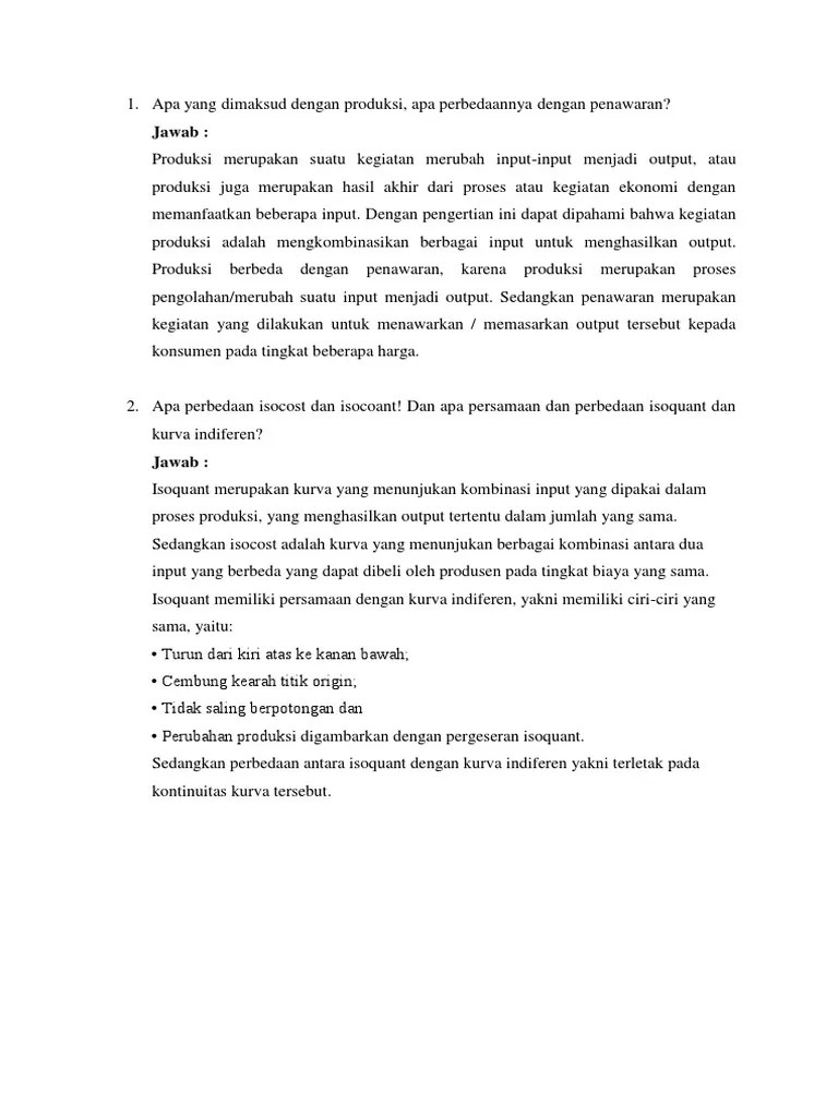 pertanyaan bab v ( teori perilaku konsumen ). Daftar pertanyaan mengapa diperlukan sistem pengendalian manajemen apakah relevansi mempelajari teori motivasi dalam mempelajari sistem pengendalian manajemen dalam perusahaan yang telah terintegrasi, pusat laba (pusat laba hilir) menjadi pelimpahan biaya tetap dan laba dari divisi hulu? Mampu menjelaskan konsep dan teori produksi. Mempertemukan ruang kota dengan teori produksi ruang. Hubungan antara tiga pertanyaan dalam ekonomi mikro dan tiga teori dalam ekonomi mikro :